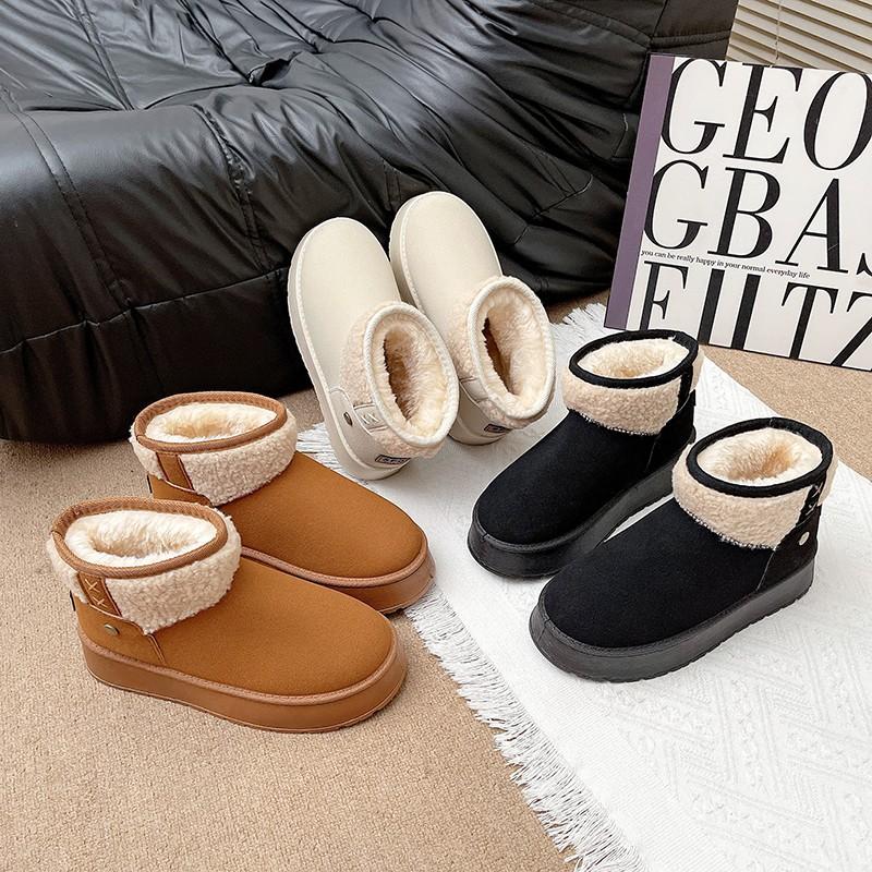Women's lightweight thick sole winter thermal insulation fur one snow boots non-slip cushioning wear casual sports cotton boots