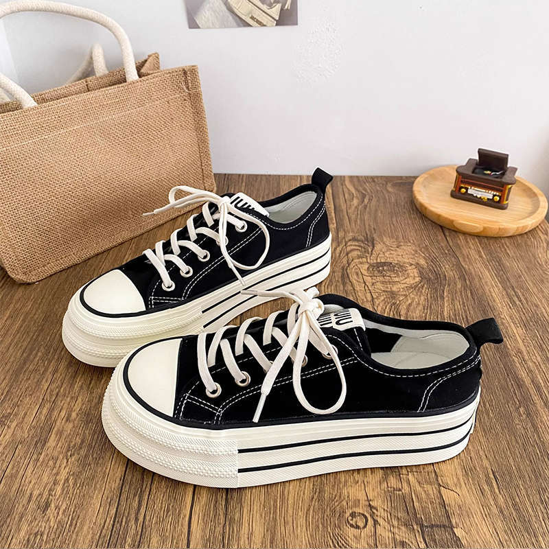Dopamine canvas shoes women's thin spring and autumn new niche thick-soled heightening board shoes children's versatile