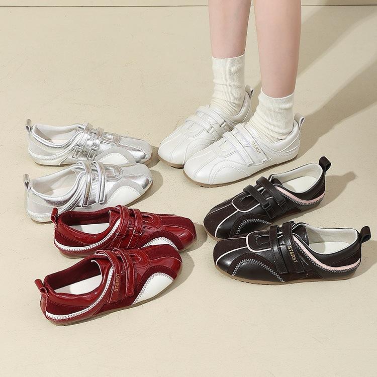 Korean version of genuine leather ballet training shoes for women's 2025 summer new Velcro sports and leisure Mary Jane silver shoes