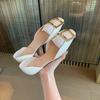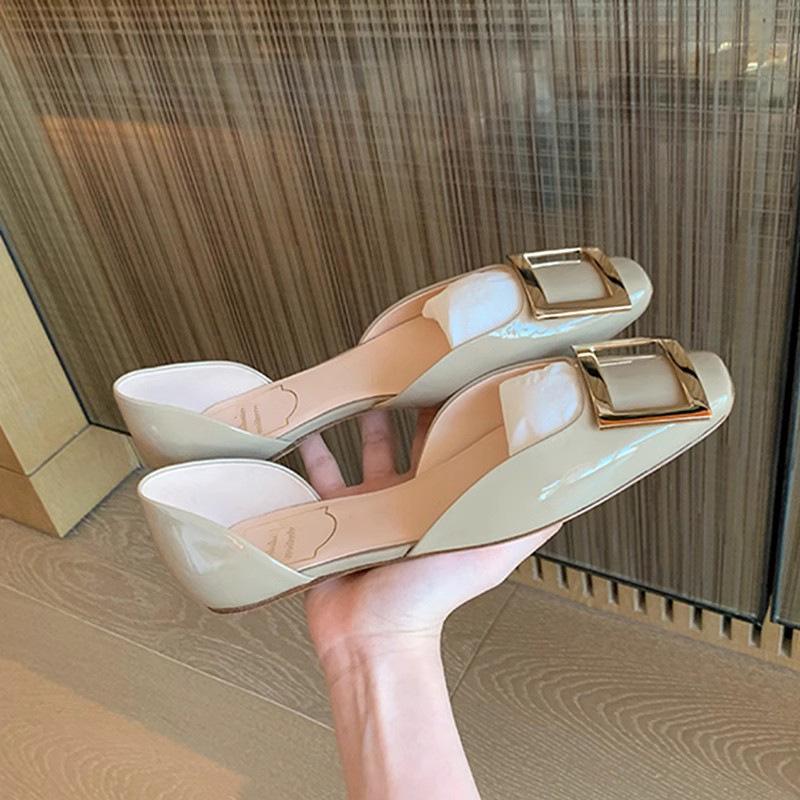 Sheepskin version~ square head shallow mouth single shoes women's buckle French temperament hollow sandals commuting leather grandma flats