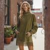 Women's Fashion Casual Solid Color Corduroy Long-sleeved Dress With Lapel Shirt , Loose Long Skirt