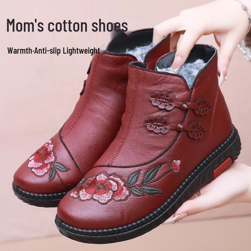 Women's High-Top Winter Plush Cotton Shoes - Ideal for Middle-Aged and Elderly