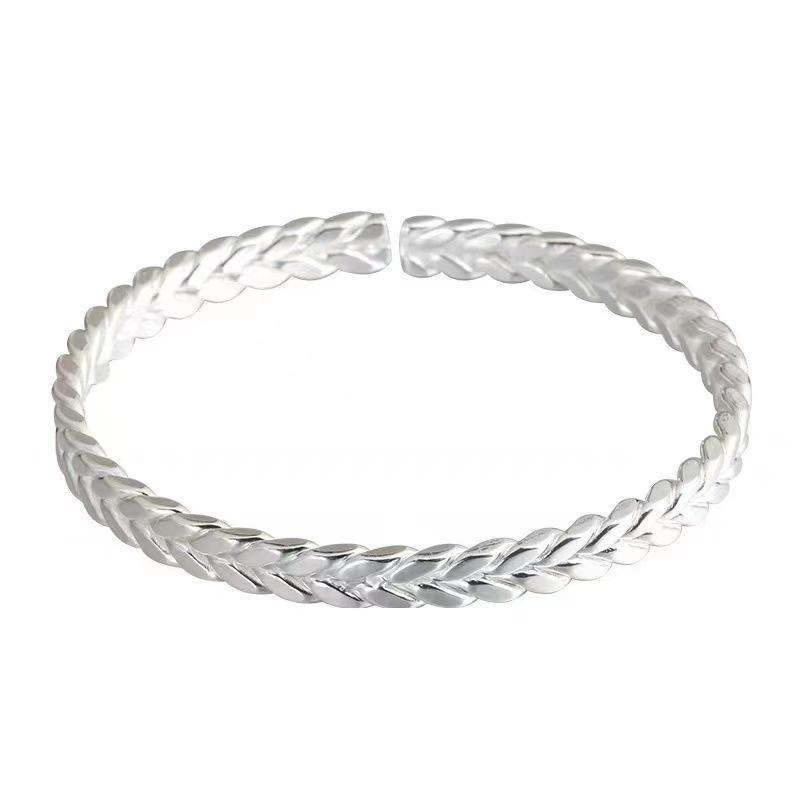 Silver Wheat Ear Open Bangle - Spike Peace Design, Fashionable & Versatile Luxury Accessory