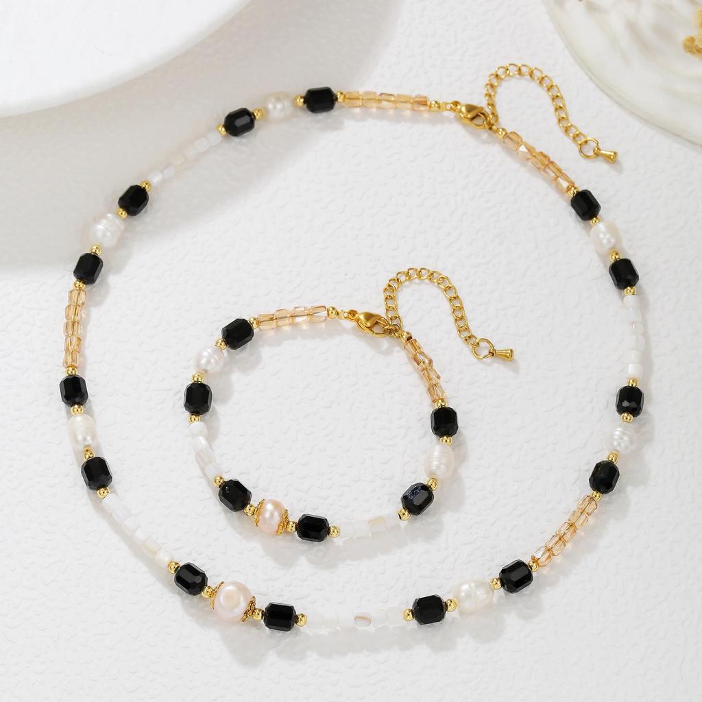 Exquisite Retro Bracelet-Necklace: Freshwater Pearls with Black & Yellow Crystals