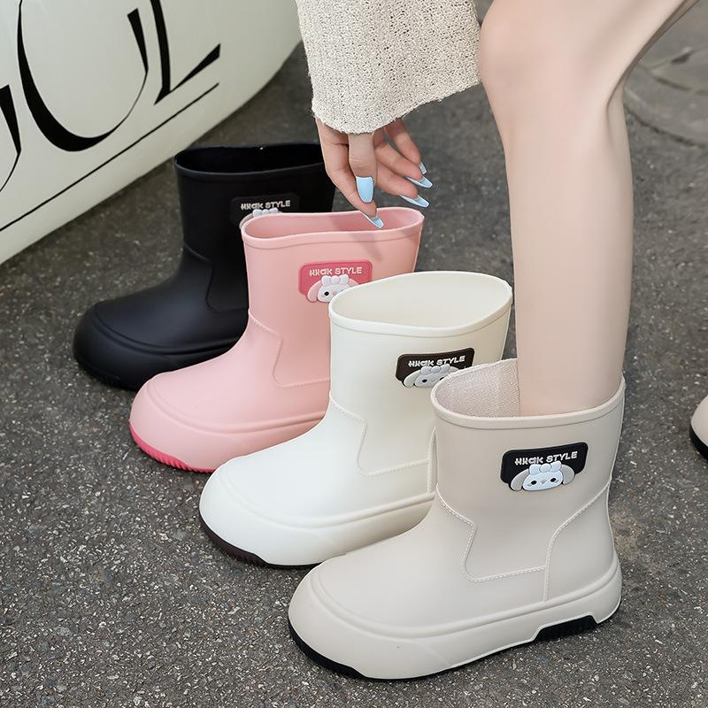 2025 new waterproof rain shoes women's fashion wear warm short rain boots Internet celebrity platform water shoes soft sole rubber shoes