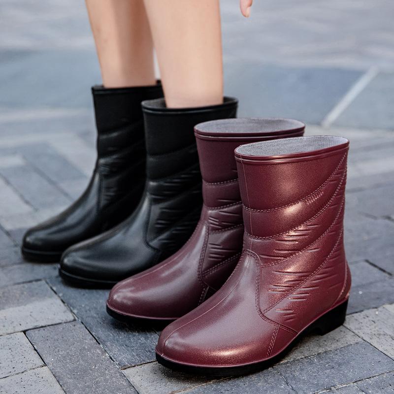 2025 women's new water shoes winter velvet thermal shoe cover rain boots fashion outdoor mid tube rain shoes women