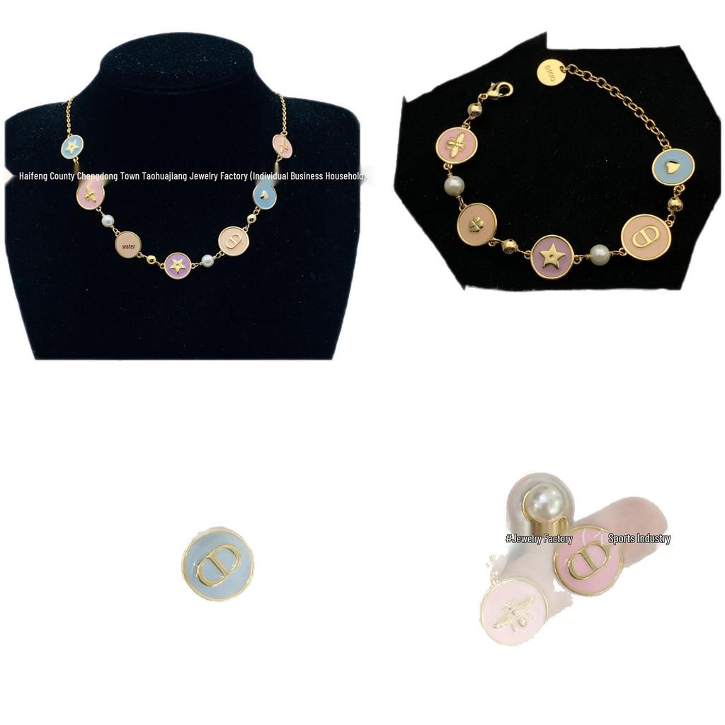2025D House Classic Pearl Necklace & D House CD Letter Retro Women's Bracelet in High-Quality Brass & Epoxy.