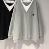 Women's Sweatshirt Spring Autumn New Thin Fake Two-piece V-neck Long-sleeved Top