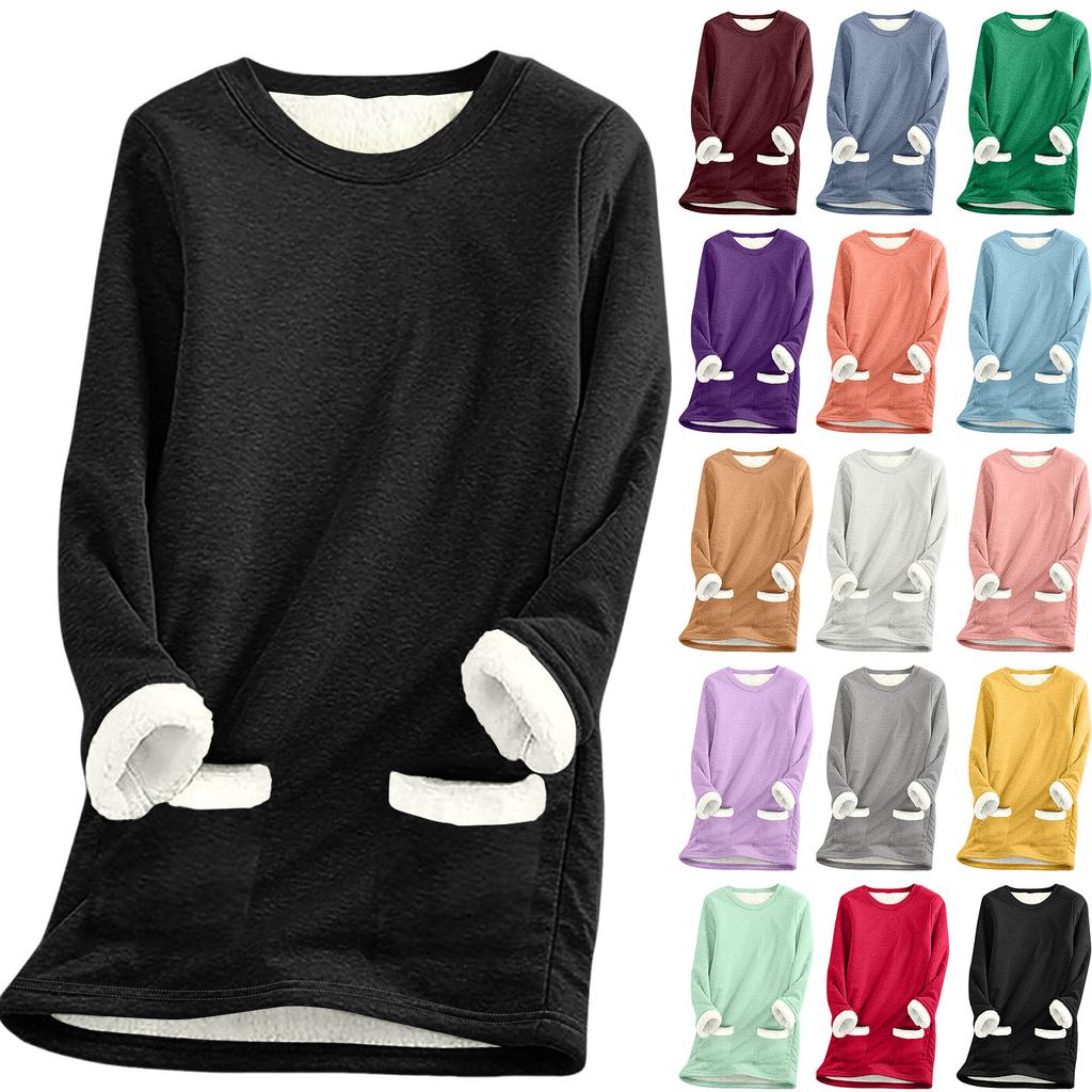 Women Christmas Thick Fleece Printing Sweatshirt Warm Underwear Top