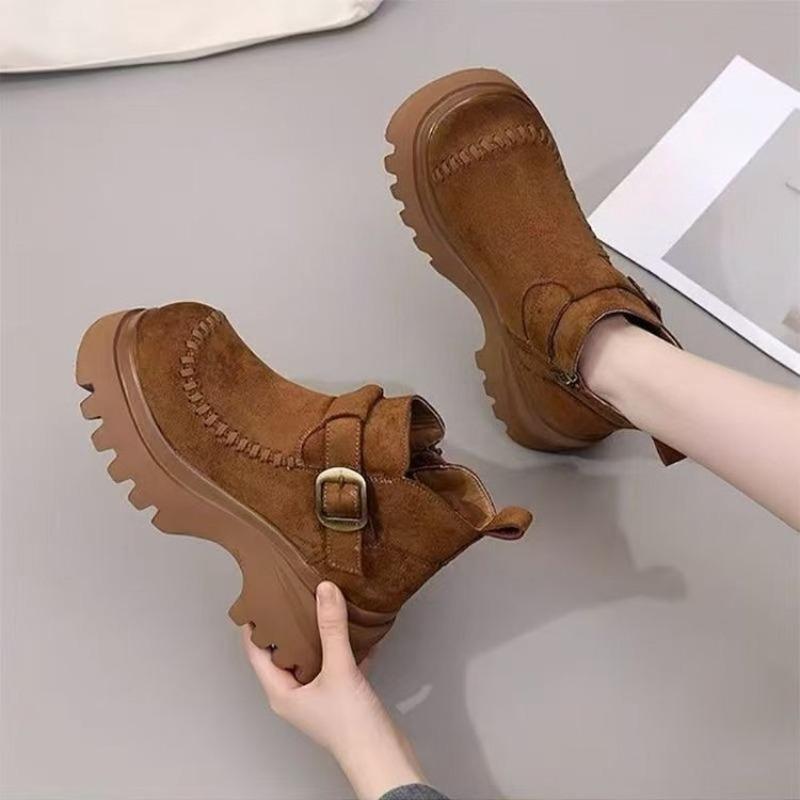 Velvet Shoes, Women's Retro Thick-soled Height-increasing Ankle Boots, Versatile Shoes, Women's Boots