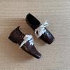 Retro Square Toe Chunky Heel Leather Ballet Shoes for Women