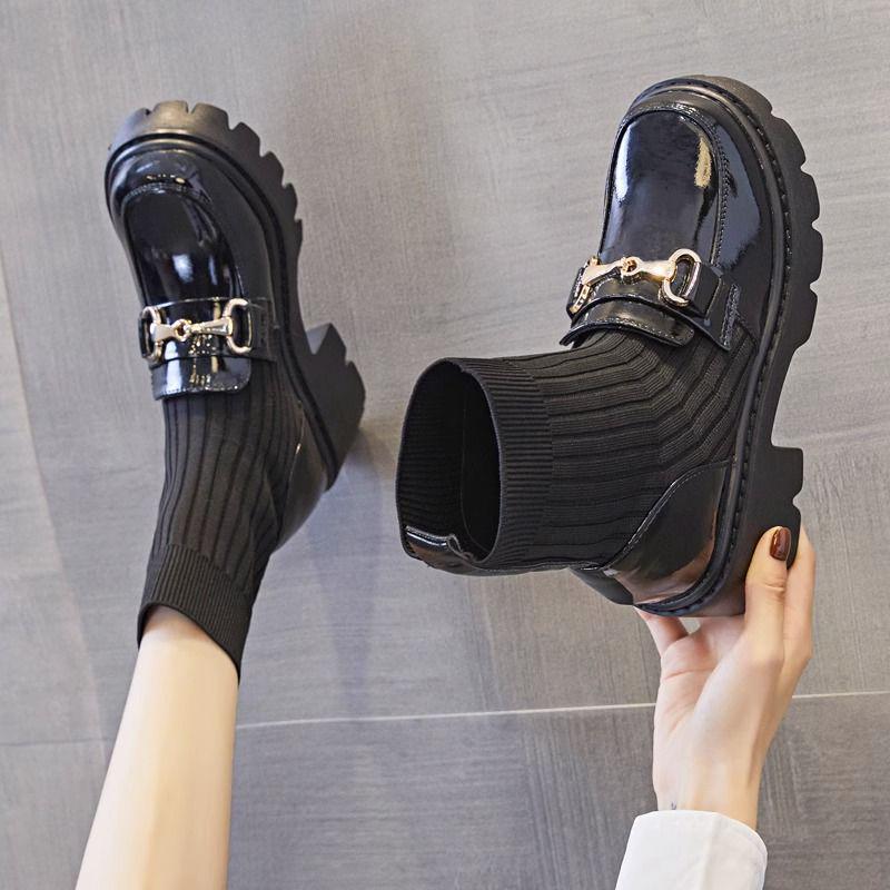 Women's Spring 2025 Chunky Heel Ankle Boots - British Style, Elastic Slimming, Hidden Heel, Sock Boot Design, Suitable for Autumn.