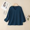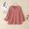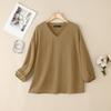 ZANZEA Moteriški laisvalaikio V formos iškirptės vienspalviai 3/4 rankovių marškiniai