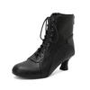 New Lace Up Ladies High Heel Shoes Strange Steampunk Boot Victorian Ankle Boots Women Pointed Toe Thick Soled Short Boots