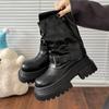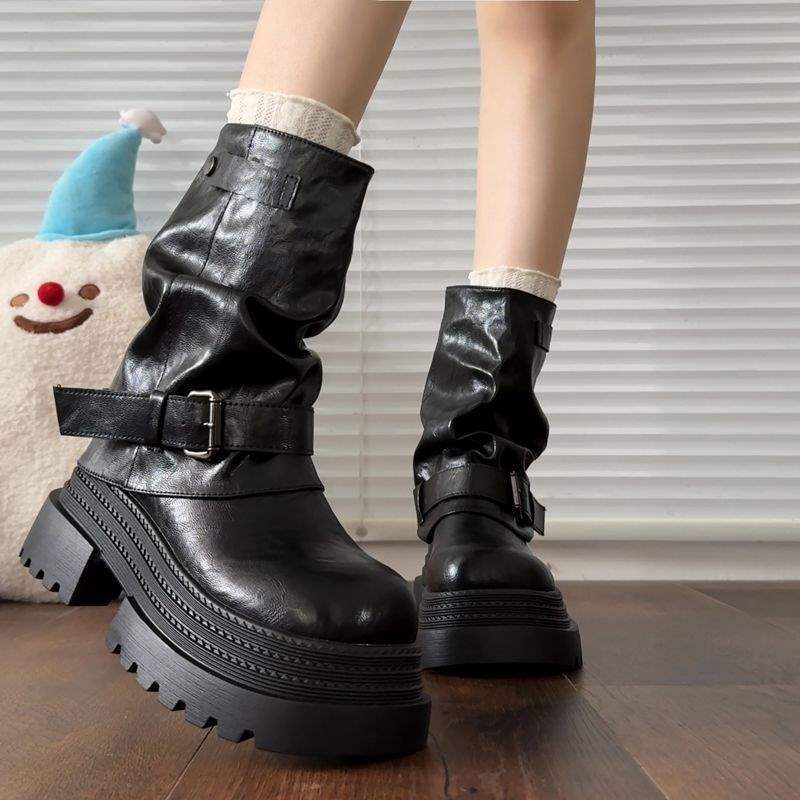 Thick-soled Maillard medium tube short boots for women 2025 new British style retro fashion pleated Martin boots autumn women