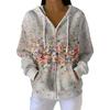 Women's Casual Fashion Long-Sleeved Zip-Up Christmas Print Knitted Hoodie