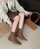 2025 Korean version of the new white short boots, retro versatile and simple inner height-increasing slope heel short tube temperament small square h