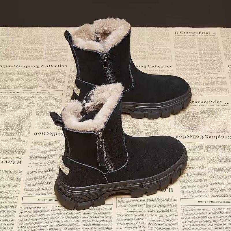 Leather snow boots women's new winter warm cotton boots Martin casual thickened velvet short boots non-slip cotton shoes