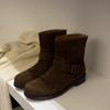 Sheepskin version~ retro suede matte round head thick heel belt buckle short boots women's 2025 western cowboy boots Martin boots