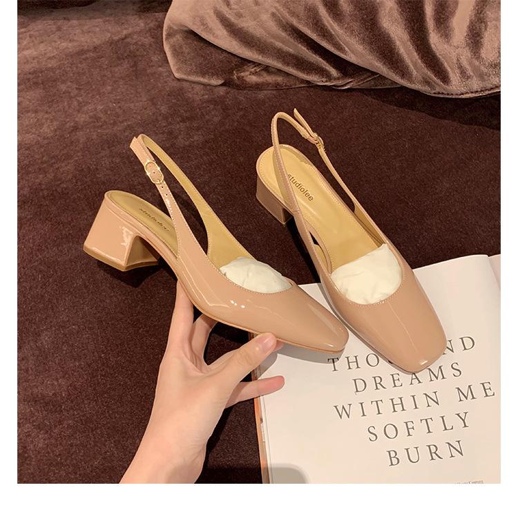 Grape mother of the same style, sexy one-word with square head, rear air, light mouth thick heel single shoes, women's summer leather sandals
