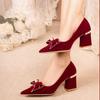 Red wedding shoes thick heels are not tired. Pregnant women can wear Chinese Xiuhe clothes and two wedding shoes.