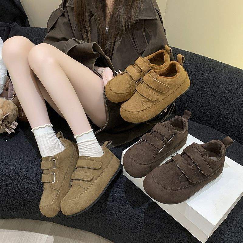 thick-soled velvet board shoes women's bread shoes 2025 winter new versatile Velcro casual sports thermal cotton shoes