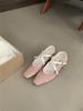 Cross-strap Mary Jane shoes women's 2025 autumn new small square head thick heel suede soft sole single shoes ballet shoes