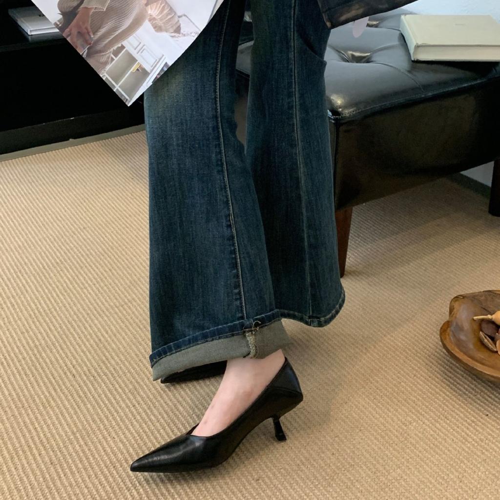 2025 new pointed simple light mouth stiletto high heel single shoes one pedal fashionable soft sole commuter single shoes women