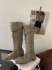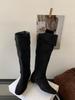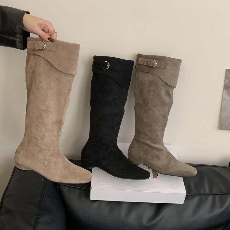 2025 new retro suede square head thick heel medium heel boots women but knee high and thin two wear stacked boots