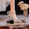 Fashion Women Pumps Pointy Shallow Mouth Elegant Sequin Bow High Heels Fine Heel Pearl Single Shoes Women Wedding Bride Heels Women