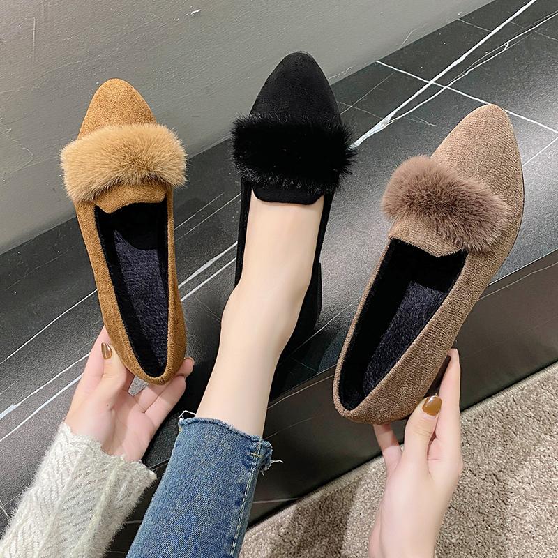 Fashion 2025 New Women Flats Furry Sweet Flat Shoes for Women Spring Casual Shoes Slip on Loafers Shoes Soft Sole Comfortable