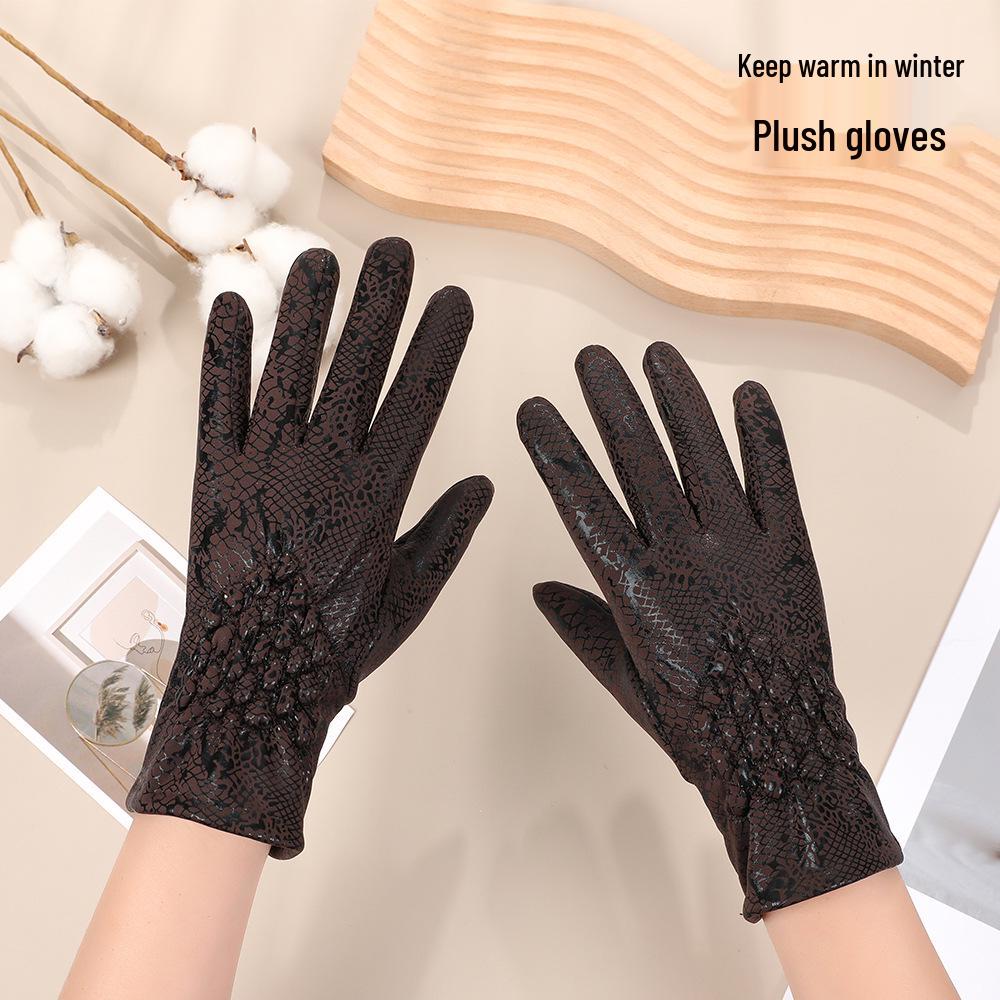 Women's Thickened Velvet Winter Cycling Gloves - Warm, Cute, Windproof, and Touchscreen-Compatible