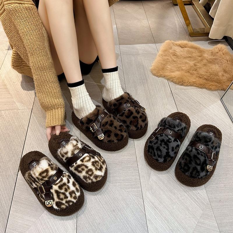Mao Mao slippers women's thick-soled women's outer autumn and winter new fashion leopard print home plush cotton slippers