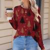 Women's Fashionable Casual Christmas Printed Pleated Comfortable Round Neck Loose Long Sleeve T-Shirt Top