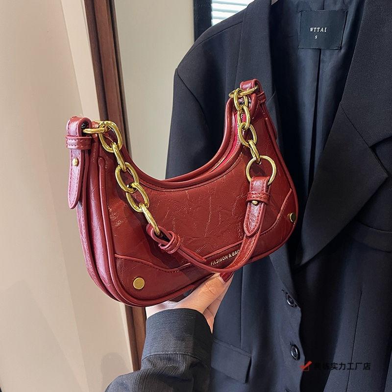 Popular red small bag women's spring and summer new versatile chain shoulder armpit bag wedding bride messenger bag