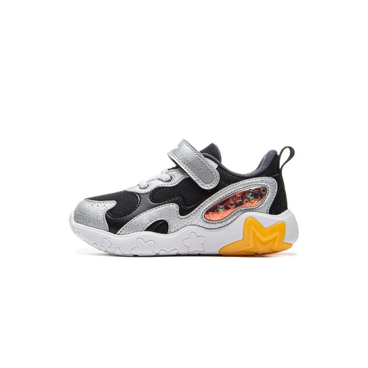 Li Ning Kids Comfortable Versatile Non-Slip Wear-Resistant Breathable Low-Top Casual Shoes Kids sneaker Silver Black YKNU108-3