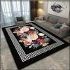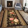 Bold Boho Flower Black Background Accent Mat Purple Blue Orange Floral DecorCheckered Edge CarpetWashable Rug