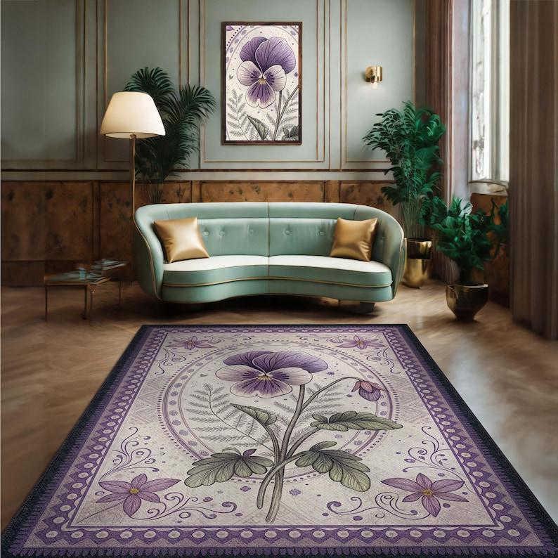 Rug, Elegant Violet Rug, Living Room , Washable Vintage , Floral Bedroom