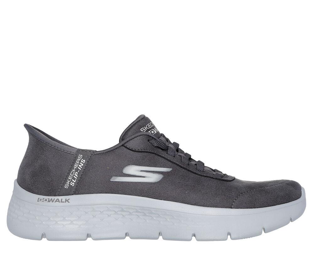 The Go Walk Flex Mali Slip-ins by Skechers are designed for comfort and support during everyday walks. Featuring the exclusive Hands Free Slip-ins® technology with molded heel and Heel Pillow™ system for secure fit without laces. Made with vegan leather and elastic laces for flexible adjustment. Includes Skechers Air-Cooled Memory Foam® insole for cushioning and breathability, and lightweight ULTRA GO® cushioning.