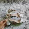 Women's Sandals Silver Gold Summer Open Toe Ankle Strap Comfort Low Block Chunky High Heels Party Dress Sexy Pumps Wedding Shoes