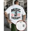 2025 Nauja muzika yra mano terapija Spausdinti apvalios apykaklės marškinėliai Vasariniai vyriški didelis dydis Medvilniniai kasdieniai vakarėlio trumparankoviai viršutiniai drabužiai Street Top