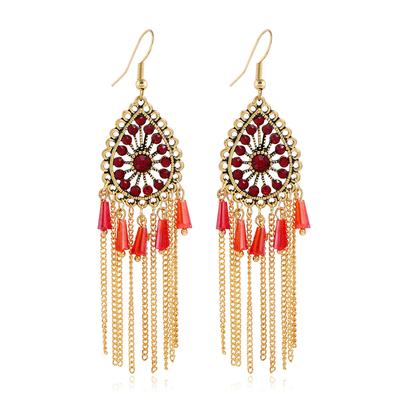 Madingi ir kūrybingi auskarai, personalizuoti retro tekstūros tuščiaviduriai ilgi deimantais inkrustuoti lydinio etninio stiliaus auskarai