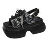 Fashion New Summer Women Leather Chunky Sandals High Platform Trainers Breathable Casual Slippers Shoes Woman 8CM Heels Wedge Sneakers