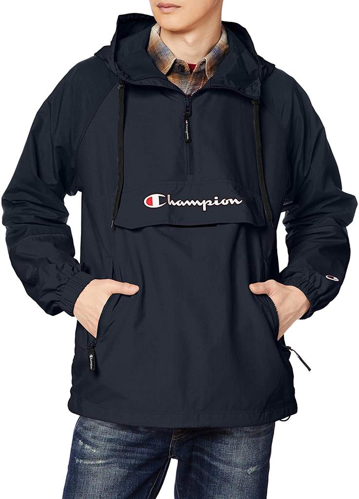 Champion Hooded Anorak Mesh Script Logo Size L Men's Jacket, Water-Repellent, Lining, Embroidery, Black, (C3-R603)