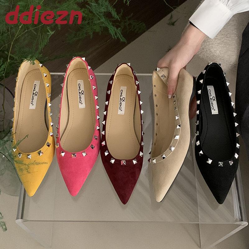 Fashion Pointed Toe Footwear Slip On Flats Shoes For Ladies 2025 New Summer Spring Female Shallow Flock Women Flats With Rivet Shoes
