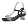 Fashion Women's Summer New High Heel Sandals Crystal Buckles Thick Heel Square Head Style Rubber Bottom Leather Single Shoes