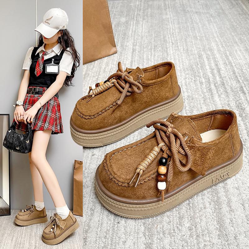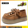 Leather platform women's all-inclusive lace-up kangaroo shoes heightening women's shoes new loafers small leather shoes single shoes