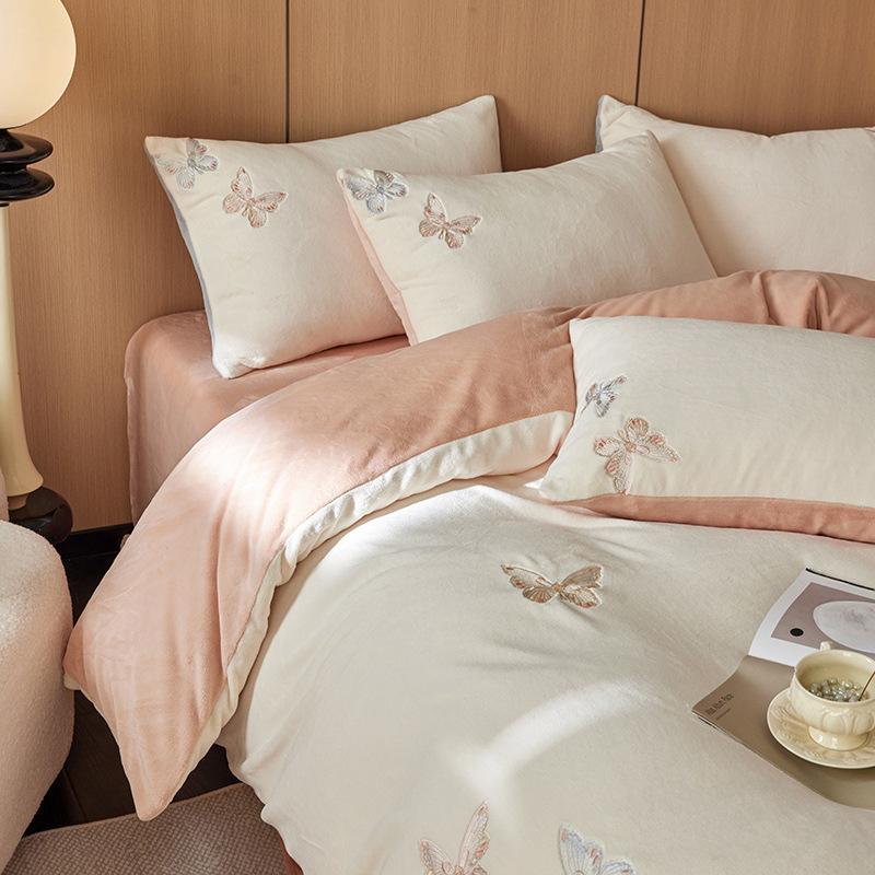 High-Grade High-Gram Weight Thickened Milk Fleece Four-Piece Set Mengdie Girl Heart Bed Sheet Quilt Cover Bed Hat To Keep Warm