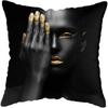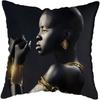45*45CM Modern Living Room Black Gold African Lady Woman Style Look Art Deco Sofa Pillowcase Cushion Cover