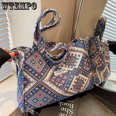 Didelės talpos krepšys moterims Naujos mados krepšys važinėjimui į darbą moterims Nacionalinio stiliaus pirkinių krepšys Drobės krepšys ant vieno peties Moteriškas rankinis krepšys